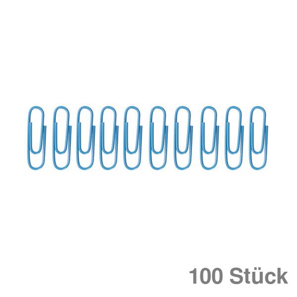 Briefklammer. Runde Form, Metall, kunststoffüberzogen. Länge: 26 mm. Farbe: blau