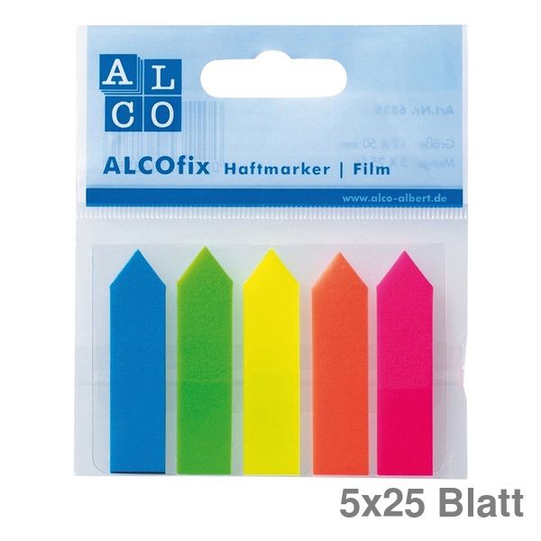 Haftmarker aus transparenter Folie in Pfeilform sind hervorragend geeignet zum Markieren. versch. Farben, selbstklebend, ablösbar, reißfest, beschreibbar