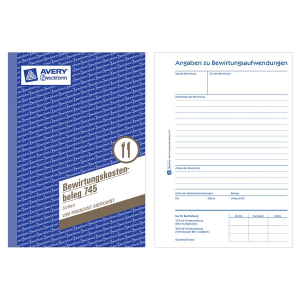 Nutzen Sie den Bewirtungskostenbeleg von Avery Zweckform um die entstandenen Kosten absetzen zu können. Das Formular berücksichtigt alle vom Finanzamt geforderten Daten laut § 4 Abs. 5 Ziff. 2 EStG wie: Ort der Bewirtung, Datum usw. Der Bewirtungskostenbeleg enthält zudem Empfehlungen zum Ausfüllen und gibt Hinweise für die Buchhaltung.