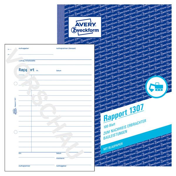 Die Bauformulare von Avery Zweckform sind unverzichtbare Helfer für Bau und Handwerk. Der Bautagesbericht ist behördlich vorgeschrieben! Der Bau-Tagesbericht enthält eine klare Untergliederung in Witterung, beschäftigte Arbeiter, Fremdfirmen, Behinderungen, Änderungen und besondere Vorkommnisse. Die Bauformulare von Avery Zweckform sind vorgelocht, für eine schnelle Ablage!