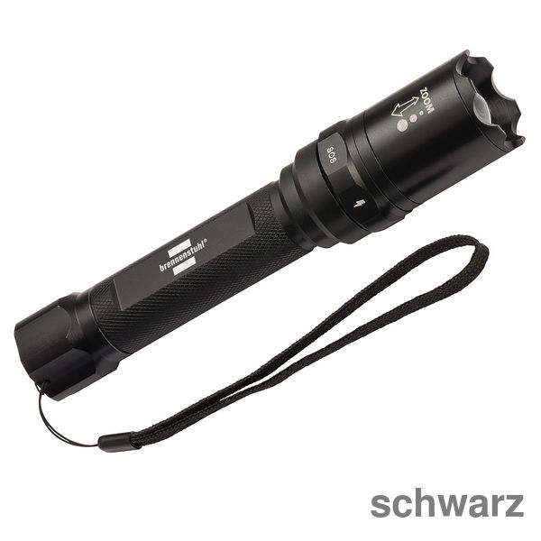 USB-wiederaufladbare Taschenlampe mit integriertem Li-Ion Akku und Ladeanzeige. Die LED Taschenlampe mit einer hohen Leuchtkraft und einer schnellen Funktionswahl bietet durch ihre CREE-LED extrem helles Licht, welches durch einen Schalter mit Soft-Touch Funktion bequem einzustellen ist (100% - 70% - 40% - 10% - strobe - SOS). Dank dem stufenlosen Fokus lässt sich das flächige Nahlicht zu einem fokussierten Fernlicht umwandeln. Zudem eignet sich die Taschenlampe dank Strobe-Funktion als Mittel zur Selbstverteidigung. Die robuste Taschenlampe ann dank der Schutzart IP44 problemlos in Außenbereichen eingesetzt werden.