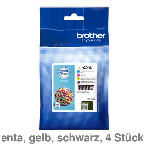 Brother Tintenpatrone LC-424VAL jeweils ca. 750 Seiten Originalzubehör schwarz, mehrfarbig 4 St./Pack.