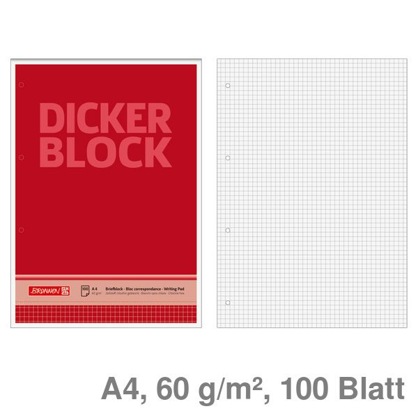 Brunnen Briefblock A4 "Dicker Block", 4-fach gelocht kariert 60g/m² 100Bl.