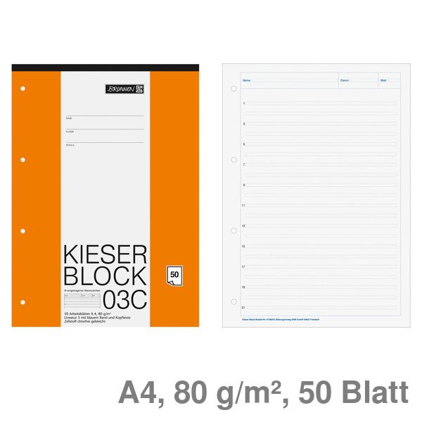 Brunnen Briefblock A4 "Kieser Block", 4-fach gelocht liniert (Lineatur 3) 80g/m² 50Bl.