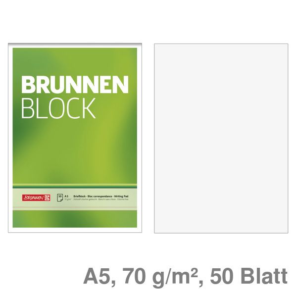 Brunnen Briefblock A5 "Brunnen Block" blanko 70g/m² 50Bl.