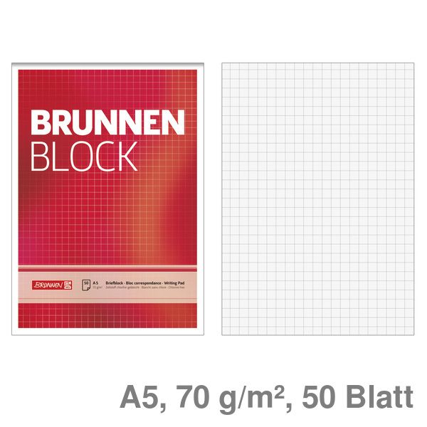 Brunnen Briefblock A5 "Brunnen Block" kariert 70g/m² 50Bl.