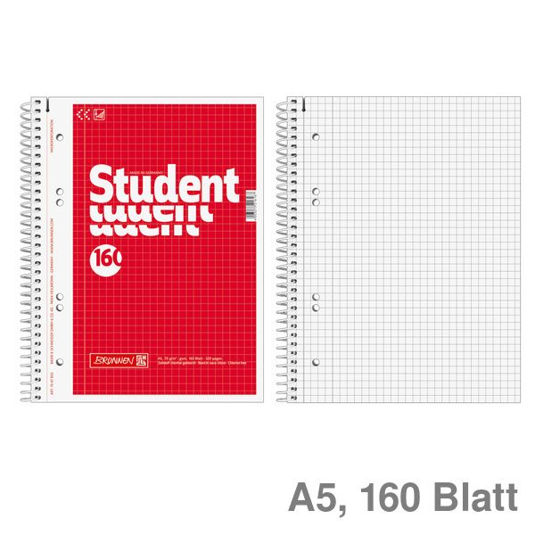Ein Allrounder der besonderen Art ist der Collegeblock Student. Er ist vielseitig einsetzbar durch die Spiralbindung in Kombination mit der Microperforation und 4-fach Lochung. Ob als Mitschreibebuch oder Ringbucheinlage, der 'Student' macht alles mit. Grammatur: 70 g/m². Format: A5, kariert