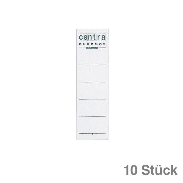 Rückenschild zum Einstecken, kurz/breit, mit zweiseitigem Druck, für Plastik-Ordner, lösungsmittelfrei. Material: Karton 180 g/qm. Format: 55 x 190 mm. Farbe: weiß.