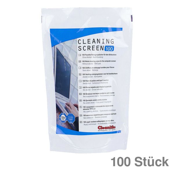 Reinigungstücher, geeignet für TFT/LCD/PLASMA, sowie Glasoberflächen von Kopierern und Scannern. Tücher getränkt mit alkoholfreier Bildschirmreinigungsflüssigkeit. 100 Feuchttücher pro Nachfüllpackung.