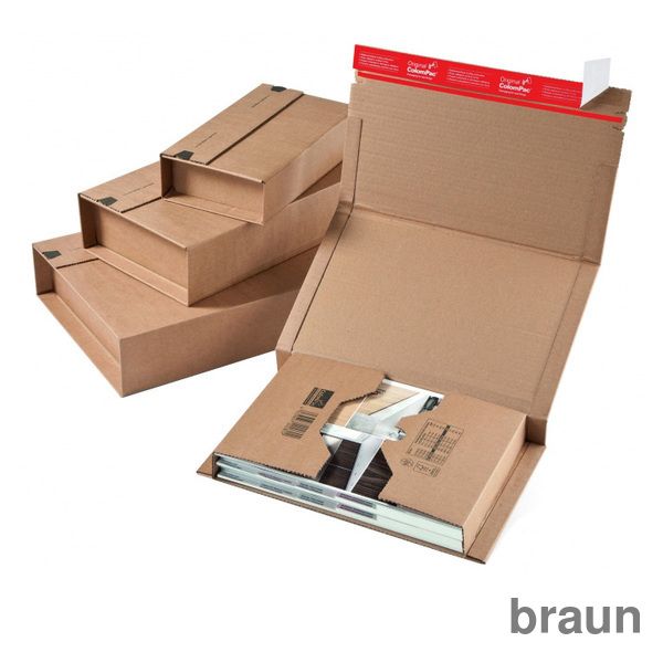 Universal-Versandverpackung, für DIN A3 Formate. Innenmaße: (B)455 x (T)320 x (H)-70 mm. Außenmaße: (B)510 x (T)330 x (H)-85 mm. Zum Wickeln, Selbstklebeverschluss, Aufreißfaden.