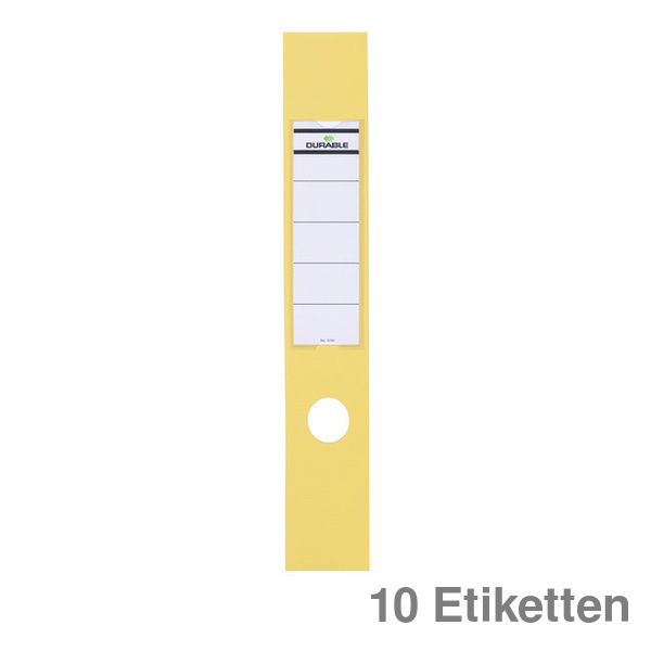 Rückenschilder ORDOFIX®. Werkstoff: Kunststoff-Folie. Aufdruck vorhanden. Selbstklebend. Format des Schildes: lang/breit. Auswechselbares Einsteckschild aus 135 g/qm Karton, mit Loch. Größe (B x H): 60 x 390 mm. Farbe: gelb.
