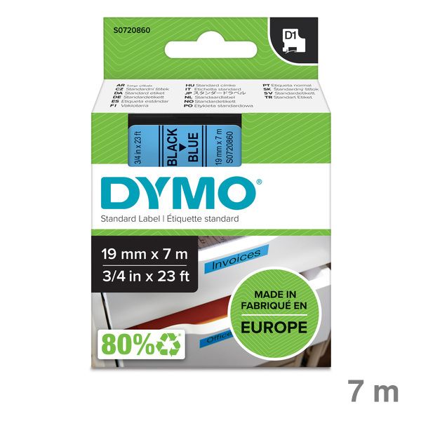 Dymo Schriftband "D1" blau / schwarz 19 mm x 7 m