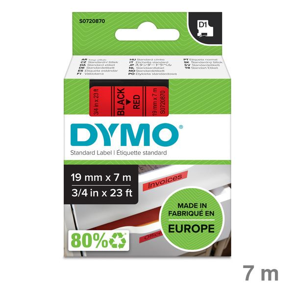 Dymo Schriftband "D1" rot / schwarz 19 mm x 7 m