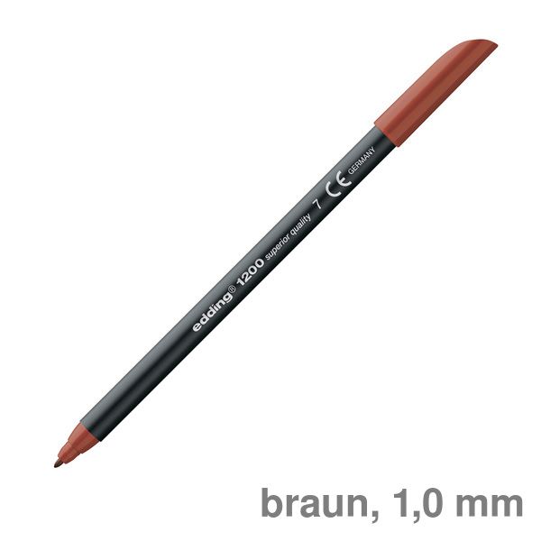 Fasermaler edding 1200 colourpen. Fasermaler zum Schreiben, Malen, Colorieren, Hervorheben und Markieren. Ideal zum Anfertigen von Zeichnungen und zum kreativen Schreiben. Wassergelöste Tinte mit hoher Lichtbeständigkeit, auswaschbar auf Wasserbasis. Fasermaler mit schwarzem Kunststoffschaft und Rundspitze. Strichstärke: 1 mm. Schreibfarbe: braun.
