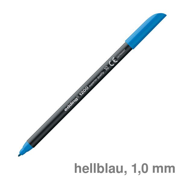 Fasermaler edding 1200 colourpen. Fasermaler zum Schreiben, Malen, Colorieren, Hervorheben und Markieren. Ideal zum Anfertigen von Zeichnungen und zum kreativen Schreiben. Wassergelöste Tinte mit hoher Lichtbeständigkeit, auswaschbar auf Wasserbasis. Fasermaler mit schwarzem Kunststoffschaft und Rundspitze. Strichstärke: 1 mm. Schreibfarbe: hellblau