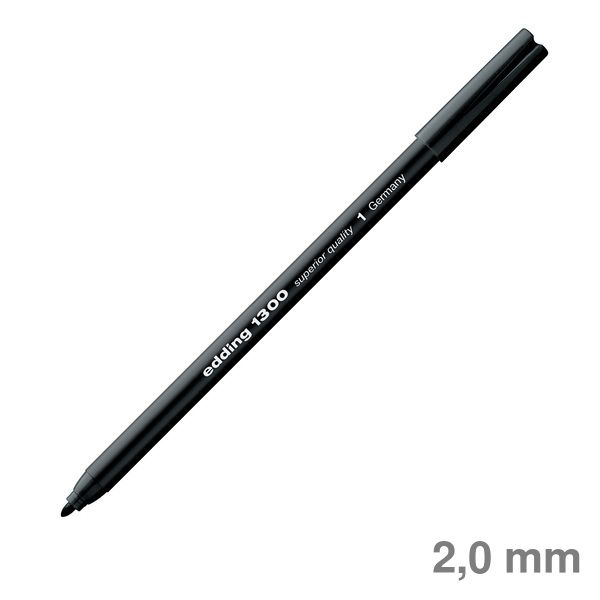 Fasermaler edding 1300 color pen. Ideal für das Anfertigen von Zeichnungen, Schriften, Skizzen, Modezeichnungen und Effektvollen Layouts. Fasermaler mit schwarzem Kunststoffschaft und formstabiler Rundspitze. Auswaschbare Tinte auf Wasserbasis. Hohe Lichtbeständigkeit. Strichstärke: ca. 2 mm. Schreibfarbe: schwarz.