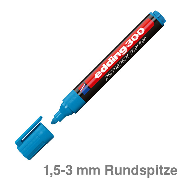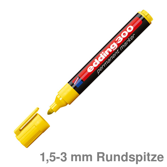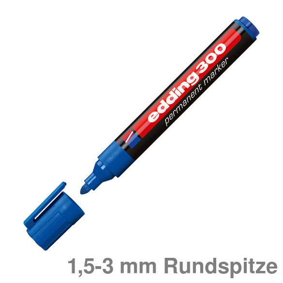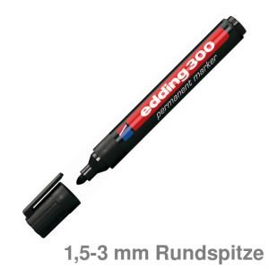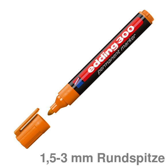 Permanentmarker 300. Nachfüllbarer Marker zum Beschriften, Bemalen, Kennzeichnen von fast allen Materialien, auch Metall, Glas, Kunststoff. Permanente, geruchsarme Tinte ohne Zusatz von Toluol/Xylol, wisch- und wasserfest, lichtbeständig. Rundspitze. Kunststoffschaft. Umsteckbare Clip-Kappe in Schreibfarbe. Schaftfarbe: schwarz . Strichstärke: ca. 1,5 - 3 mm. Schreibfarbe : rot.
