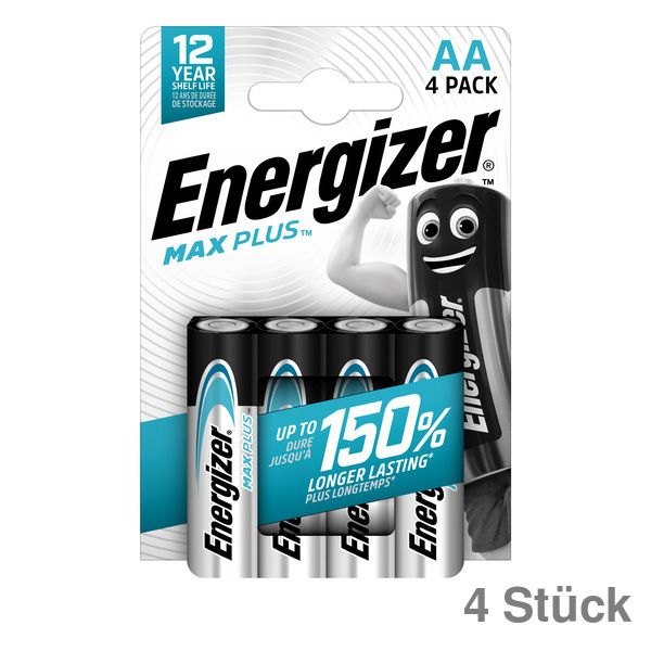 Hohe Durchführungsenergie für Ihre High-Tech Geräte. Die neue Linie der Durchführungs-Alkaline Batterien! Max Plus™ sind die am längsten anhaltenden Batterien von Energizer, welche kraftvolle Durchführungen für Ihre Geräte bieten! 12 Jahre Haltbarkeit. Leckageschutz im Gerät (Lecks von vollständig verwendeten Batterien bis zu 2 Jahren). Empfohlen für: Drahtlose tragbare Videospielkontroller, Spielzeug mit motorisiertem bewegenden Teil, Fernbedienung für TV/Audio/ Unterhaltung, drahtlose Computermaus.