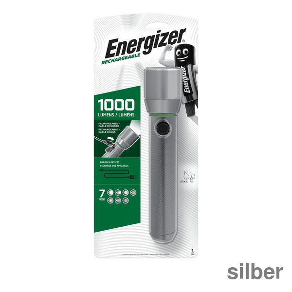 Energizer® Taschenlampe Vison HD Metal 200m 1.200lm LED Low: 8 h, High: 4 h Akku Li-Ion inkl. Mini-USB Ladekabel Aluminium