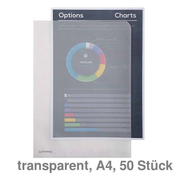 Für die Umwelt: Schluss mit der Verwendung von Plastik, um Dokumente zu schützen oder abzulegen. Die Hüllen werden aus Transparentpapier hergestellt und erleichtern so die Identifizierung der in den Hüllen befindlichen Dokumente. L-Öffnung (oben und rechts), mit Einkerbung für ein einfaches Einfügen der Dokumente. Außenformat 22x31cm für die Ablage von Blättern im Format A4.