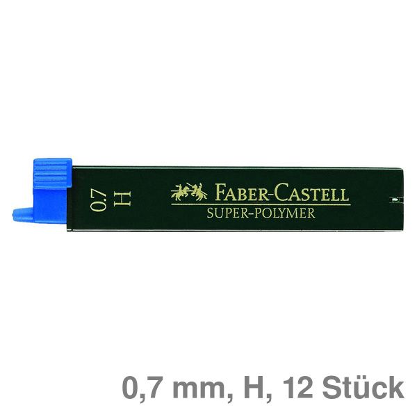 Feinmine Super Polymer 0,7 H. Verwendung für Zeichnungsträger: Papier. Feinminen für alle gängigen Druckbleistifte. Extrem bruchfest, außergewöhnlich gleitfähig. Tiefschwarze, satte Linien. Erhältlich in 8 Härtegraden un 4 Linienbreiten.. Stärke der Mine: 1. Bezeichnung der Härte: H. Schreibfarbe der Mine: schwarz.