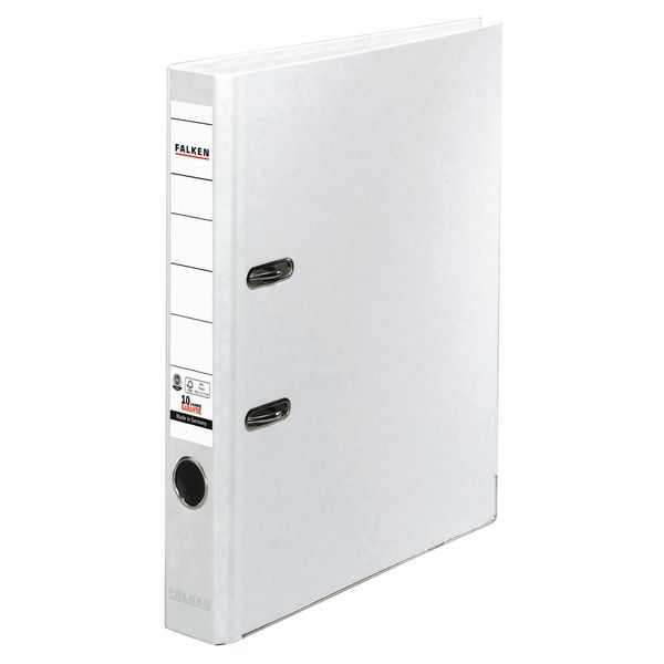 Ordner S50 Recycolor. Material der Kaschierung außen: Spezial-Kraftpapierbezug (biologisch abbaubar). Strapazierfähig und wischfest. Ausführung: Qualitätshebelmechanik mit Funktionsgarantie; Griffloch, Schlitze und Kantenschutz vorhanden. Verwendung für Papierformate: DIN A4. Breite des Rückens: 50 mm. Farbe: weiß. Zertifikate und Zulassungen: Forest Stewardship Council (FSC), Blauer Engel, LGA Qualitäts-Zertifikat.