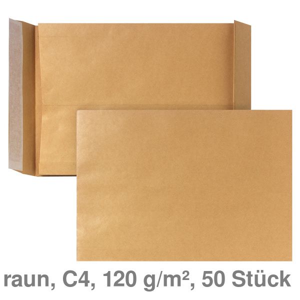 Haftklebende Faltentaschen DIN C4, ohne Fenster, braun. Maße: 229 x 324 mm.