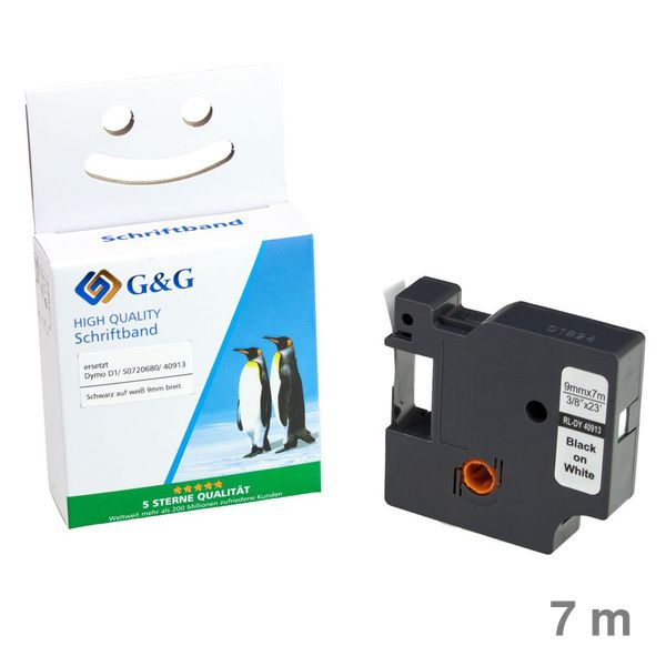 G&G Schriftband, wie Dymo 40913 weiß / schwarz 9 mm x 7 m