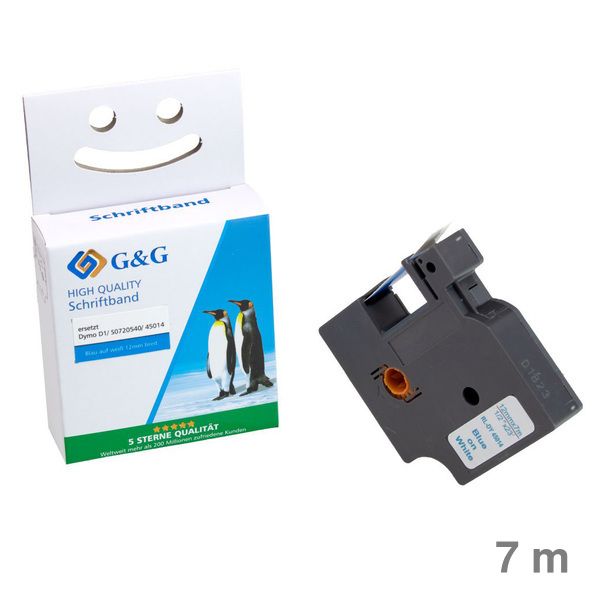 G&G Schriftband, wie Dymo 45014 weiß / blau 12 mm x 7 m
