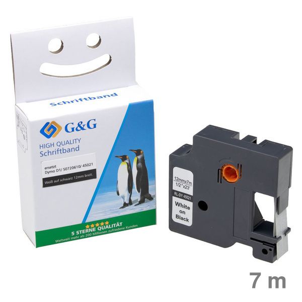 G&G Schriftband, wie Dymo 45021 schwarz / weiß 12 mm x 7 m