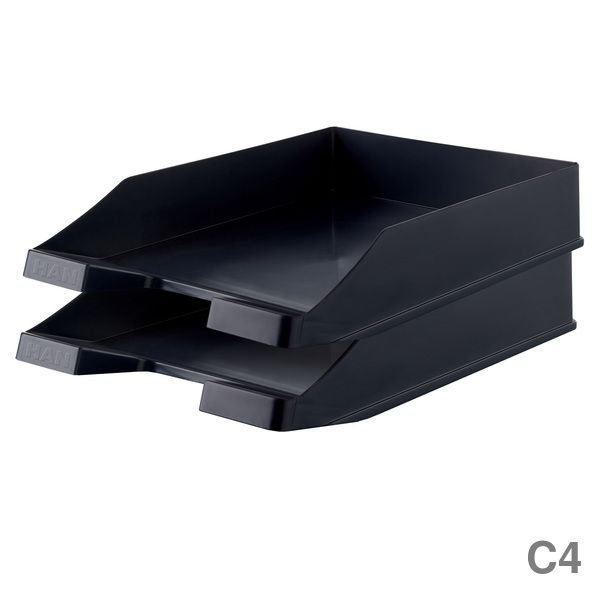 Briefablage KLASSIK KARMA, DIN A4/C4. Hochwertige Briefablage in attraktiver Farbe. Innovatives Design in Premium-Qualität. Für das HAN KARMA-Programm werden Post Consumer Materialien (bereits benutzte Kunststoffprodukte) verarbeitet. Ausgezeichnet mit dem Umweltzertifikat: DER BLAUE ENGEL. Innovatives Design in Premium-Qualität. Senkrecht oder versetzt stapelbar. Mit breitem Greifausschnitt für leichte Orientierung und optimalen Zugriff auf die Unterlagen. Die leicht angeschrägte Vorderfront der Briefablage verhindert ein Herausrutschen der Dokumente. Kompatibel zu allen Standard Briefablagen. Verwendung für Papierformate: DIN A4/C4. Made in Germany. Außenmaße (B x T x H): 255 x 348 x 65 mm. Material: 100% Recyclingmaterial. Farbe: schwarz