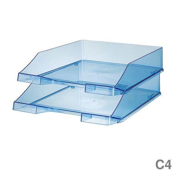 Briefablage KLASSIK, DIN A4/C4. Die klassische Briefablage in zeitgemäßem Design. Hochglänzende und transparente Farbe. Solider und langlebiger Ordnungshelfer für jedes Büro. Hat Klasse, zeigt Klasse, ist klasse! Senkrecht oder versetzt stapelbar. Mit breitem Greifausschnitt für leichte Orientierung und optimalen Zugriff auf die Unterlagen. Die leicht angeschrägte Vorderfront der Briefablage verhindert ein Herausrutschen der Dokumente. Kompatibel zu allen gängigen Briefablagen. Platz für Beschriftungsclip 1021. Verwendung für Papierformate: DIN A4/C4. Außenmaße (B x T x H): 255 x 348 x 65 mm. Material: hochwertiger Kunststoff, Polystyrol (PS). Farbe: blau