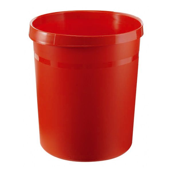 Papierkorb GRIP, 18 Liter. Der klassische Papierkorb in zeitgemäßem Design. Der umlaufende ergonomische Griffrand mit 2 praktischen Griffmulden sorgt für ein einfaches Tragen und sicheres Anbringen von Müllsäcken. Ideal für Büro und Privatbereich. Standfest und stabil. Die seidenmatte Außenoberfläche gilt als unempfindlich gegen Schmutzeinwirkungen. Dank der glatten Innenoberfläche ist der Papierkorb besonders reinigungsfreundlich. Zubehör optional: Abfalleinsatz 1 Liter, (Art.-Nr.: 1835), Abfalleinsatz 2,5 Liter (Art.-Nr.: 18355). Fassungsvermögen: 18 Liter. Made in Germany. Durchmesser (O x U x H): 312 x 237 x 350 mm. Material: hochwertiger Kunststoff, Polypropylen (PP). Farbe: rot