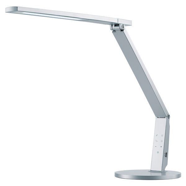 Moderne und multifunktionelle LED Leuchte. 4 verschiedene Stufen der Farbtemperatur wählbar. Mit USB Anschluss (5V, 1.2A) zum Aufladen aller Arten von mobilen Geräten. Leuchte ist um 180° drehbar. Magnetischer Smartphone-Halter kann bei Bedarf an Fuss befestigt werden. Diese Leuchte enthält eingebaute LED-Lampen. Die Lampen können nicht ausgetauscht werden.