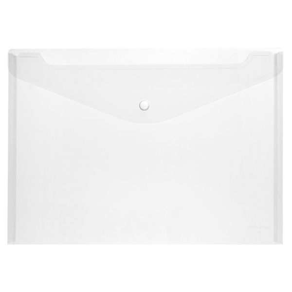 Dokumententasche A4 transparent glasklar. Art des Verschlusses: Druckknopf. Werkstoff: PP. Stärke: 0,200 mm. Verwendung für Papierformate: A4. Größe (B x H x T): 335 x 240 x 2 mm. Farbe: transparent. Max. Füllhöhe an Papier: 20 mm.