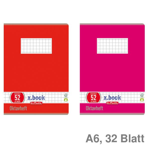 Schulheft. Ausführung Papier: holzfreies Papier,FSC Mixed, CO2 neutral, 70 g/m². Ausstattung: keine Lochung, geklammert. Extra starker Umschlag. Papierformat: A6. Lineatur/Lineatur-Nr.: kariert, 52. Anzahl der Blätter: 32 Blatt. Farbe des Einbandes: 2 Motive.
