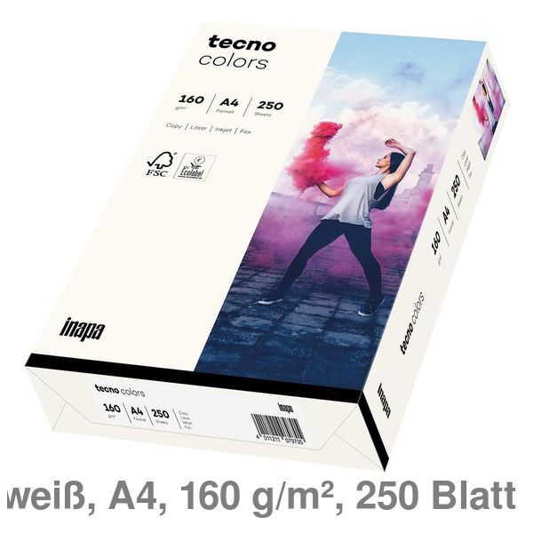 Kopierkarton A4 "Tecno Colors / Rainbow" naturweiß 160g/m² 250Bl.