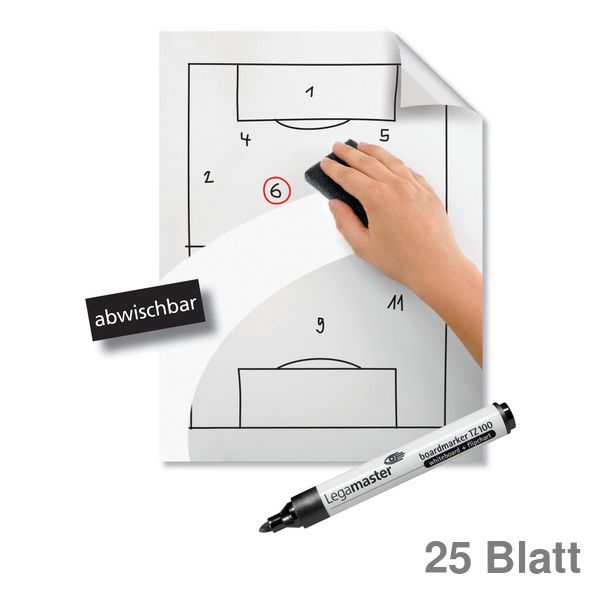 Mit Magic-Chart steht Ihnen überall und jederzeit eine Schreibunterlage zur Verfügung. Durch die Elektrostatischen Eigenschaften haften die Folien auf nahezu allen Oberflächen. Einfach die Folie abrollen und an der Wand glattstreichen. Bei Bedarf lässt sich die Folie einfach abnehmen und an anderer Stelle wieder anbringen. Moderationskarten und Notizzettel haften ohne Hilfsmittel an der Folienoberfläche, einfach glattstreichen. Umweltfreundliches material, komplett recycling fähig. Folienrolle kann in der Verpackung in handelsüberliche Flipchart-Blockhalter eingehängt werden.
