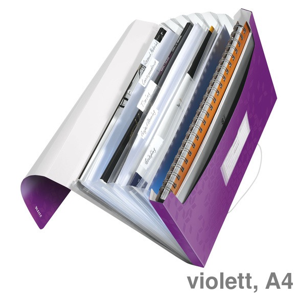 Die Fächermappen WOW in trendigen Farben mit ausgefallenen Designs und raffinierten Details. Die beste Lösung für die Organisation und Aufbewahrung von verschiedenen Unterlagen unterwegs. Mit beschriftbaren Taben und ein Zusatzfach für sonstige Utensilien und Notizbücher.