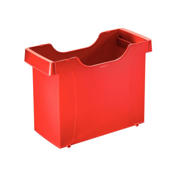 Hängemappenbox Uni-Box Plus Plus, Lieferung ohne Hängemappen. Besonders standfest, niedrige Vorderseite für bessere Lesbarkeit der Beschriftungsschilder, stapelbar, passend für all A4 Hängemappen, mit komfortablen Tragegriffen. Material: Polystyrol (PS). Format: 400 x 275 x 170 mm. Farbe: rot