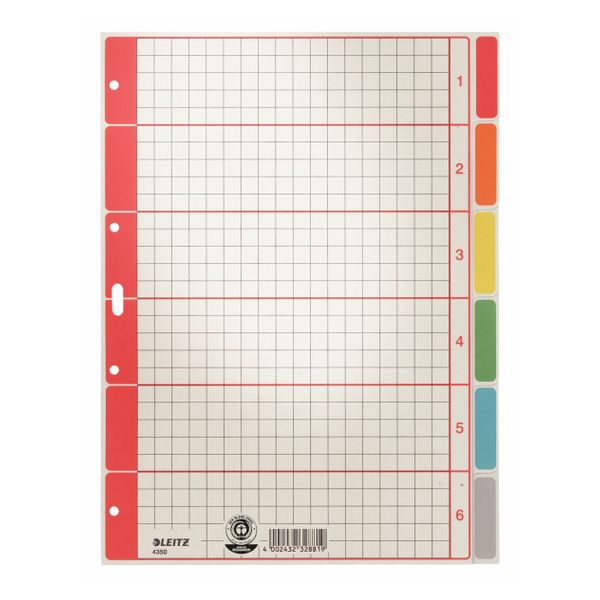 Kartonregister Blanko, A4. Leicht beschriftbares Deckblatt durch Rasterdruck, farbigen Taben und Lochung 8x8x8 cm. Material: Karton 230 g/qm (RC). Blattanzahl 6. Format: 225 x 300 mm. Farbe: grau.