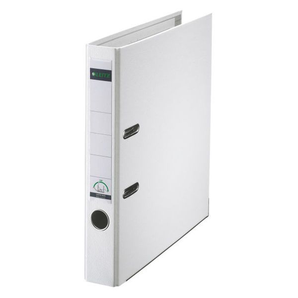 Qualitäts-Ordner Plastik schmal, mit patentierter 180°-Präzisionsmechanik für 50% weiteres Öffnen und 20% schnelleres Arbeiten. Mit Schlitzen, Griffloch, Kantenschutz, Deckblatt, Sichttasche am Rücken und auswechselbarem Rückenschild. Material: Einband aus Pappe (RC), mit Polypropylen-Folie kaschiert, innen Polyethylen-beschichtetes, graues Papier. Format: für A4, 318 x 285 mm, Rückenbreite: 52 mm. 5 Jahre Garantie auf die Mechanik. GS-geprüft. FSC®-zertifiziert. Farbe: weiß.