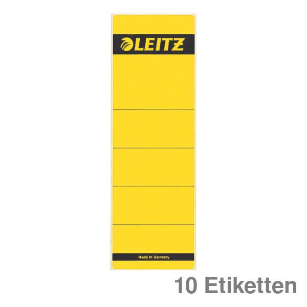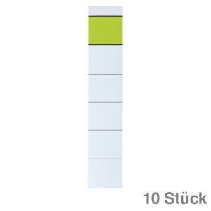 Rückenschild, selbstklebend, kurz, breit, für Standard- und Hartpappe-Ordner, hohe Deck- und Klebekraft, mit Greifrand, lösungsmittelfrei. Material: Papier, chlorfrei gebleicht. Format: 61,5 x 191 mm. Inhalt: 10 Stück. Farbe: gelb