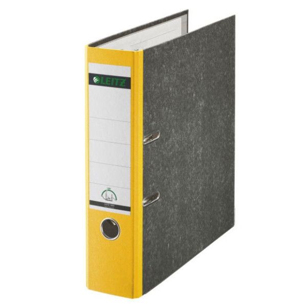 Qualitäts-Ordner breit, mit patentierter 180°-Präzisionsmechanik für 50% weiteres Öffnen und 20% schnelleres Arbeiten. Mit Schlitzen, Griffloch, Kantenschutz, Deckblatt und aufgeklebtem Rückenschild. Material: Einband aus Pappe (RC), mit Wolkenmarmorpapier (RC) kaschiert. Rücken mit farbigem Spezialpapier verstärkt. Format: für A4, 318 x 285 mm, Rückenbreite: 80 mm. 5 Jahre Garantie auf die Mechanik. GS-geprüft. FSC®-zertifiziert. Farbe: gelb.