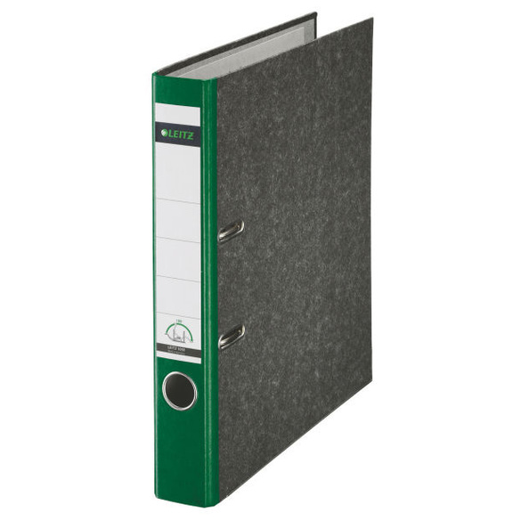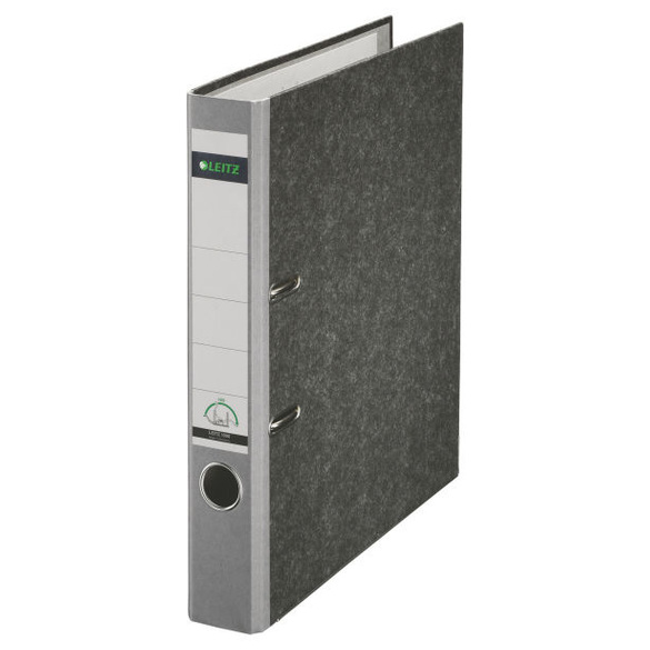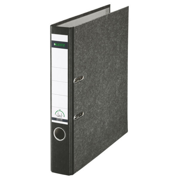 Qualitäts-Ordner schmal, mit patentierter 180°-Präzisionsmechanik für 50% weiteres Öffnen und 20% schnelleres Arbeiten. Mit Schlitzen, Griffloch, Kantenschutz, Deckblatt und aufgeklebtem Rückenschild. Material: Einband aus Pappe (RC), mit Wolkenmarmorpapier (RC) kaschiert. Rücken mit farbigem Spezialpapier verstärkt. Format: für A4, 318 x 285 mm, Rückenbreite: 52 mm. 5 Jahre Garantie auf die Mechanik. GS-geprüft. FSC®-zertifiziert. Farbe: schwarz.