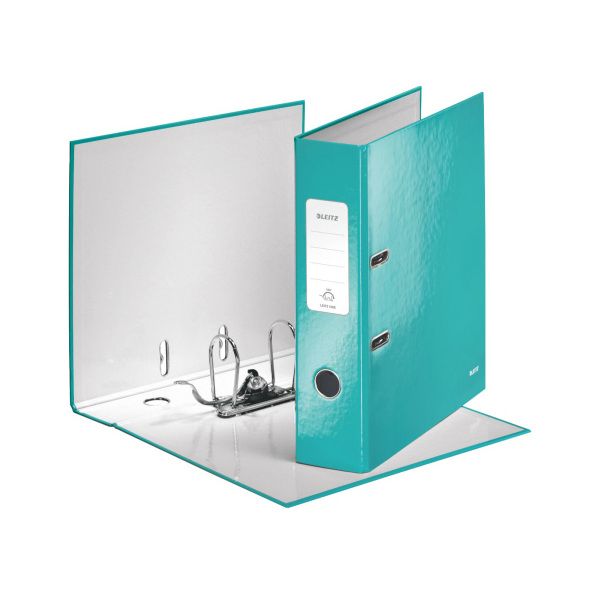 Qualitäts-Ordner WOW breit, mit patentierter 180º-Präzisionsmechanik. 5 Jahre Garantie auf die Mechanik, GS-geprüft. 50% weitere Mechaniköffnung für schnelleres und komfortableres Arbeiten. Ablegen auch auf der linken Seite möglich. GS-geprüft. Mit Schlitzen, mit Griffloch, mit Deckblatt, mit aufgeklebtem, abziehbarem Rückenschild, die laminierte Oberfläche verleiht dem Ordner ein glänzendes, hochwertiges Design. Material: Einband aus Pappe (RC), außen und innen mit laminiertem Papier kaschiert. Format: für A4, 318 x 285 mm, Rückenbreite: 80 mm. FSC®-zertifiziert. Farbe: eisblau.