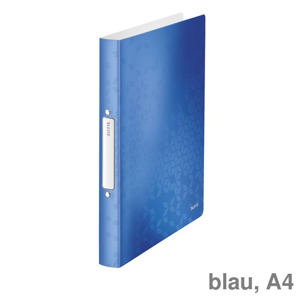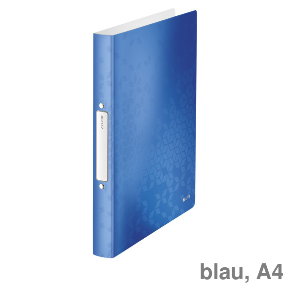 Ringbuch WOW, mit selbstklebendem Rückenschild. Mechanik: 2-Ring-Reißmechanik, Ringdurchmesser: 25 mm, Füllhöhe: 20 mm, Rückenbreite: 32 mm. Mit laminierter Oberfläche für ein glänzendes, hochwertiges Design. Material: Polyproplyen (PP). Format: A4, 314 x 257 mm. Farbe: blau-metallic