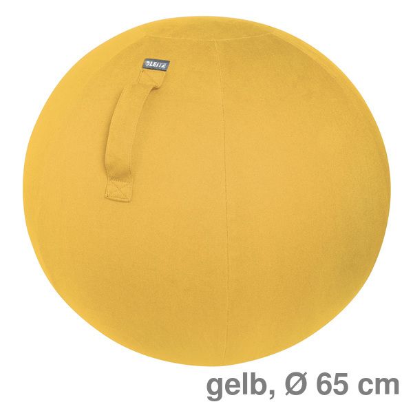 Sitzball Ergo Cosy. Moderner, ergonomischer Sitzball für aktives Sitzen. Fördert die Bewegung der Rücken- und Rumpfmuskulatur um die Körperhaltung und Beweglichkeit zu verbessern und hilft Rückenschmerzen zu lindern. Ideal als Schreibtischstuhl um in Bewegung zu bleiben. Geeignet auch für Übungen wie Yoga, Gleichgewichtstraining, Rückenstretching, Physiotherapie und Bauchübungen oder als Gymnastikball. Schnelle und einfache Inbetriebnahme durch Aufpumpen des Innenballs mit der mitgelieferten Handpumpe und Einstecken des Stopfens. Der mitgelieferte Stoffüberzug aus Baumwolle ist abnehmbar und von Hand waschbar. Mit stabilem und robustem Tragegriff. Lieferung inklusive Innenball, Stoffüberzug, Handluftpumpe und 2 Verschlussstopfen. Plastikfreie Verpackung. Material: PVC, phtalatfrei. Format: Ø 65 cm. Gewicht: 1,6 kg. Farbe: gelb