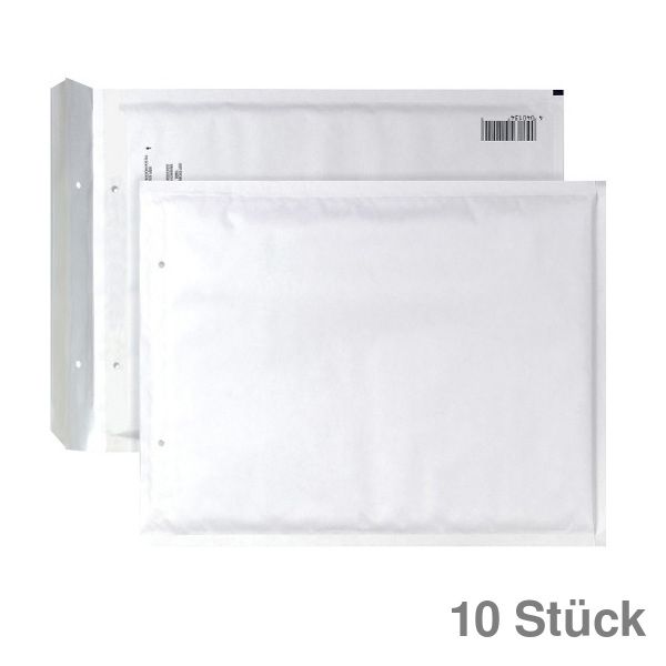 Innen: Luftpolsterfolie. Außen: Kraftpapier mit PE-Beschichtung. 50-mm-Klappe mit Haftklebung. Verschlussmöglichkeiten wahlweise Lochung oder Adhäsion für Versand als offene Sendung oder sicher verschlossen mit Haftklebung und Abdeckstreifen. Typ 13C