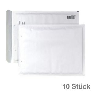 Innen: Luftpolsterfolie. Außen: Kraftpapier mit PE-Beschichtung. 50-mm-Klappe mit Haftklebung. Verschlussmöglichkeiten wahlweise Lochung oder Adhäsion für Versand als offene Sendung oder sicher verschlossen mit Haftklebung und Abdeckstreifen. Farbe: weiß, Maße: 220 x 340 mm